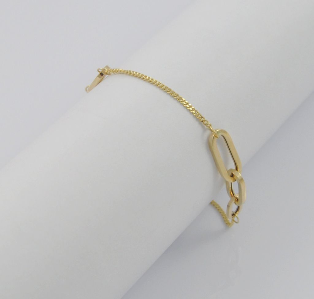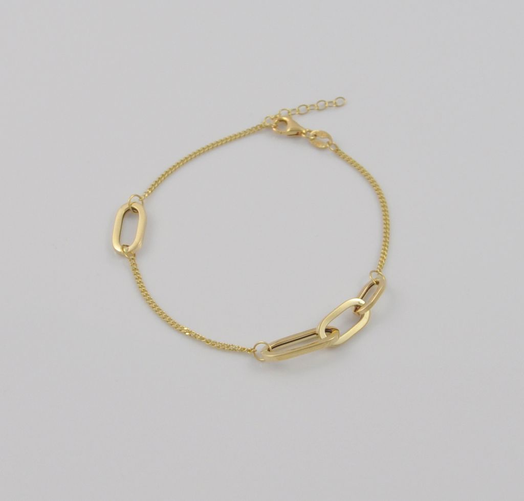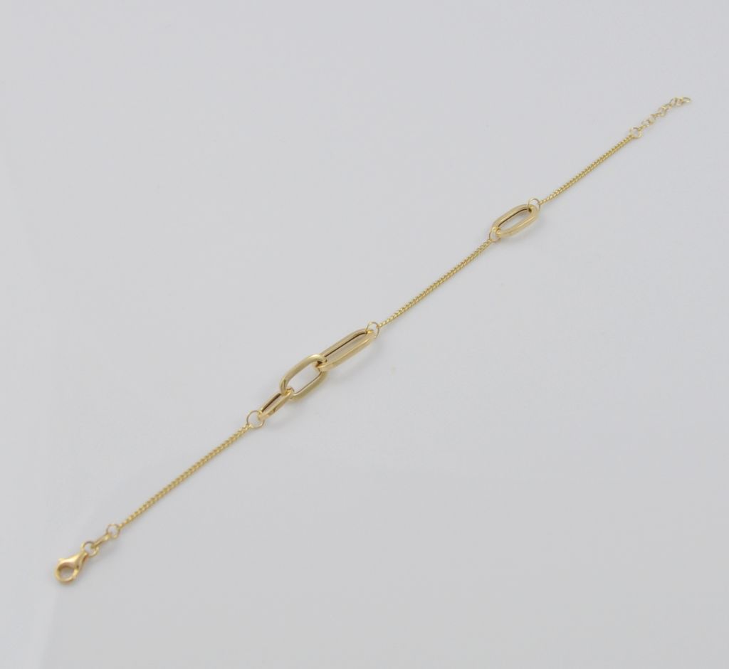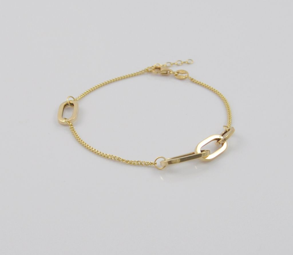Złota bransoletka wykonana z wysokiej jakości żółtego złota próby 585 (14 karat). Modowa bransoleta o długość 19 cm (17 cm + 2 cm regulacja). Waga bransolety wynosi 1,97 gr (+/- 0,10 gr).