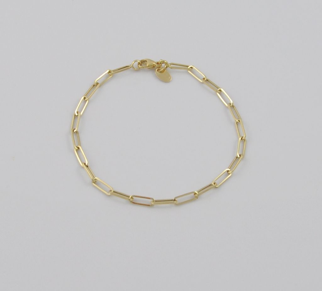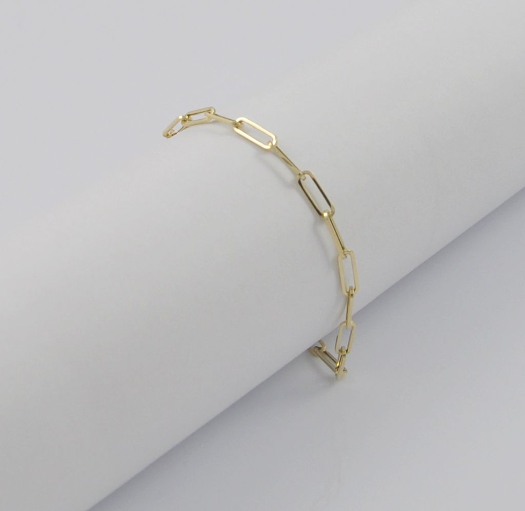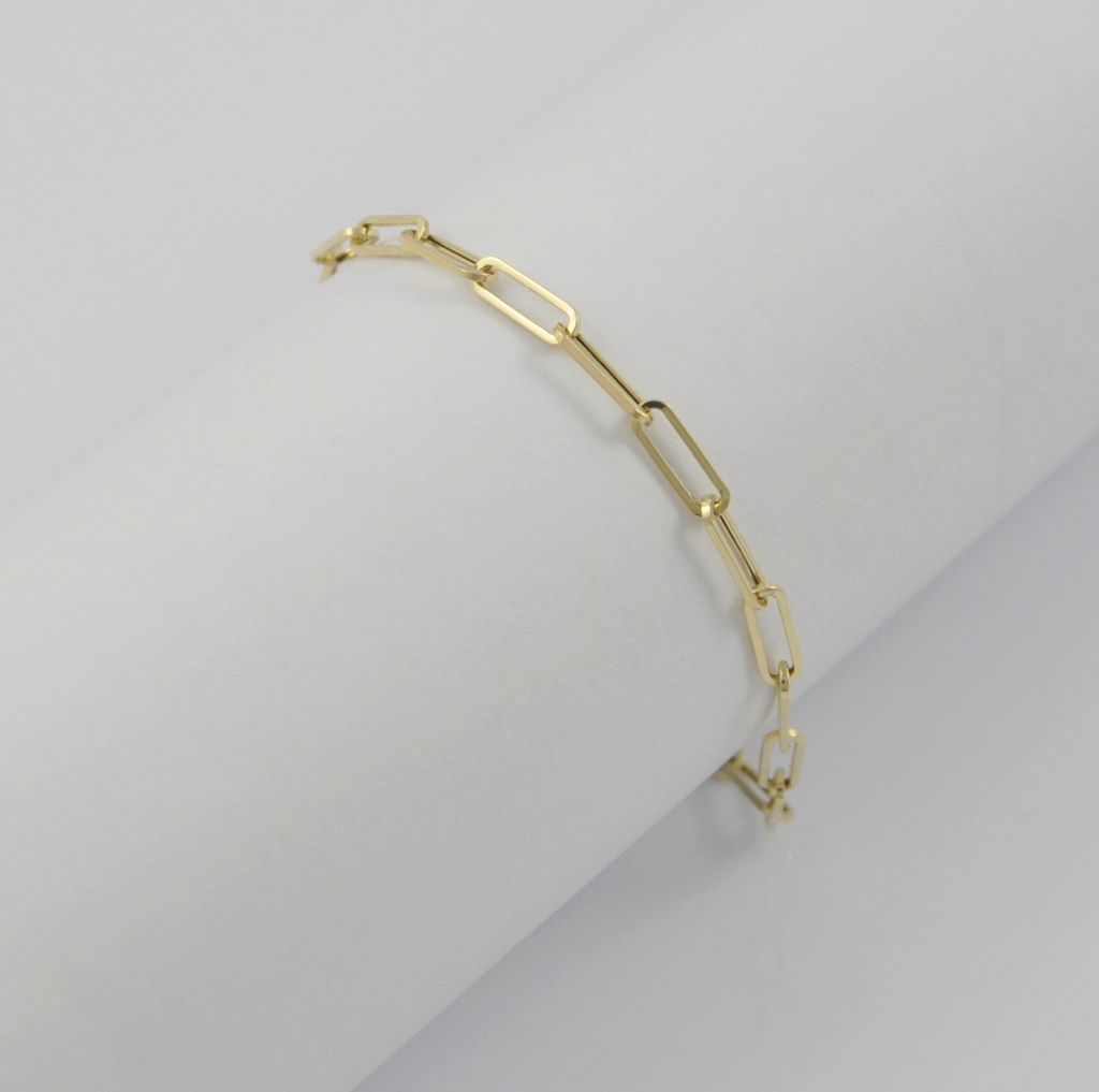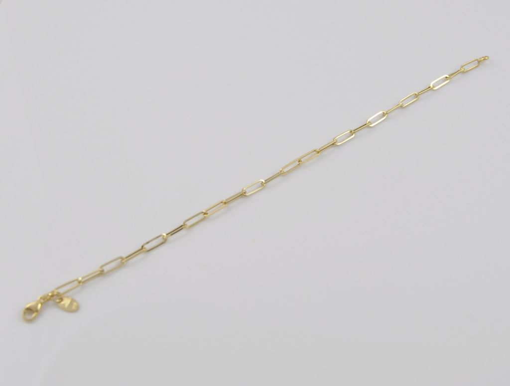 Złota bransoletka wykonana z wysokiej jakości żółtego złota próby 585 (14 karat). Modowa bransoleta długie ogniwa o wymiarach ogniwa 3/8 mm. Długość bransolety wynosi 19 cm. Waga bransolety wynosi 1,71 gr (+/- 0,10 gr).