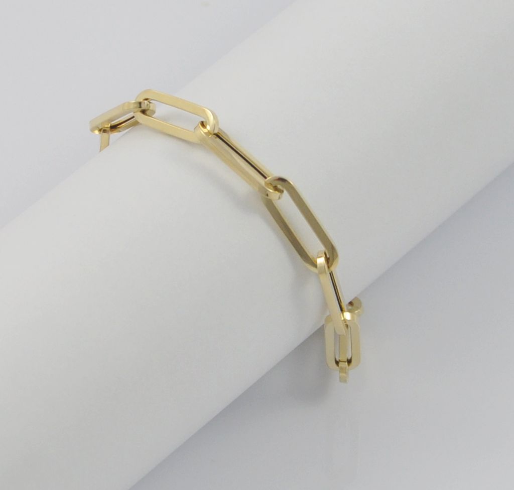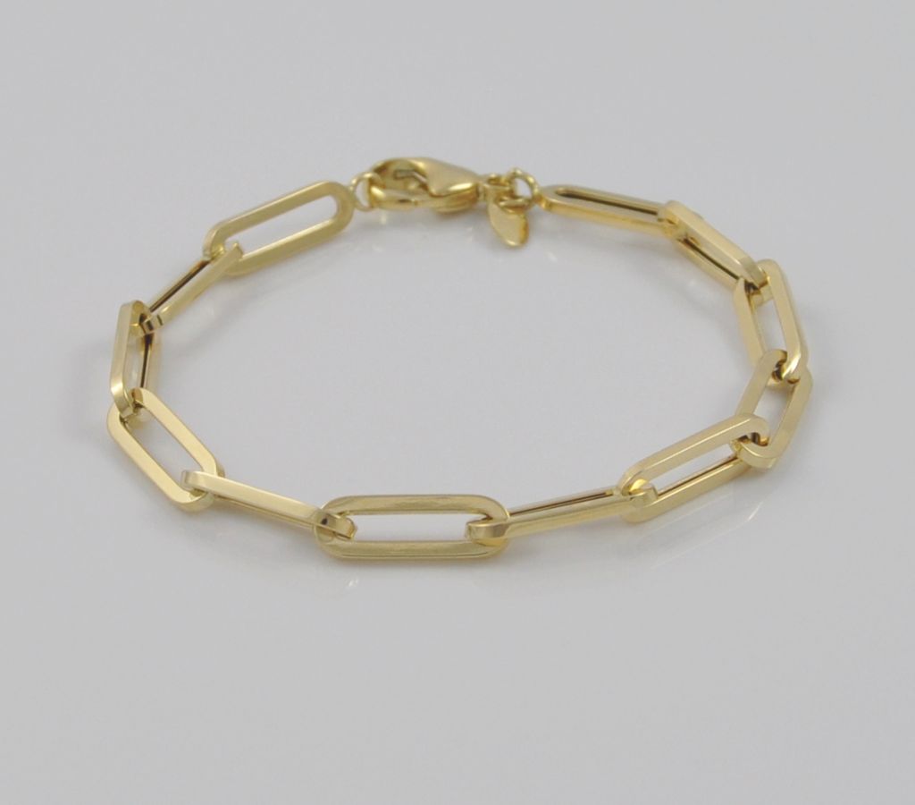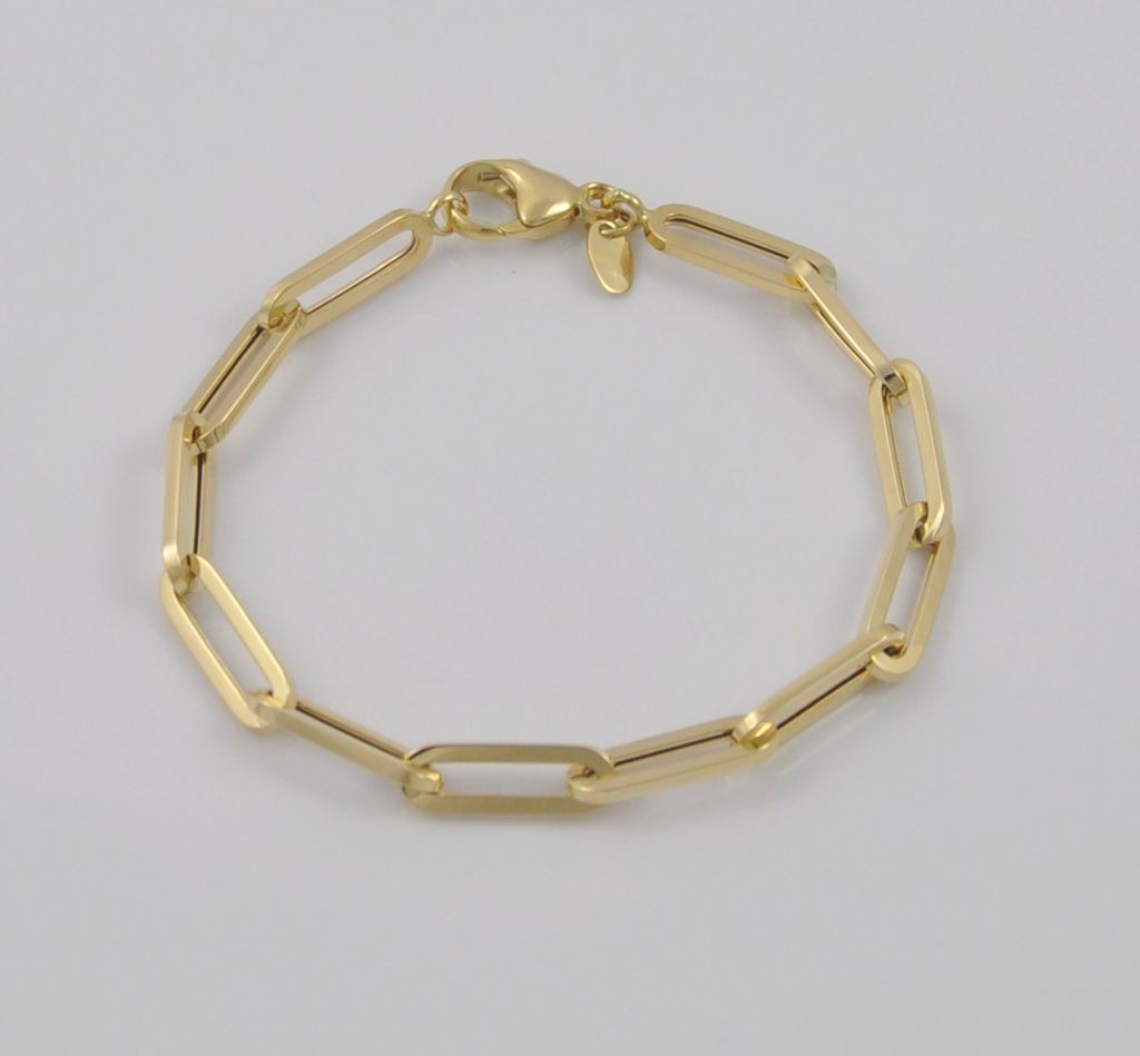 Złota bransoletka wykonana z wysokiej jakości żółtego złota próby 585 (14 karat). Modowa bransoleta długie ogniwa o wymiarach ogniwa 6/17 mm. Długość bransolety wynosi 19,5 cm. Waga bransolety wynosi 6,82 gr(+/- 0,10 gr).