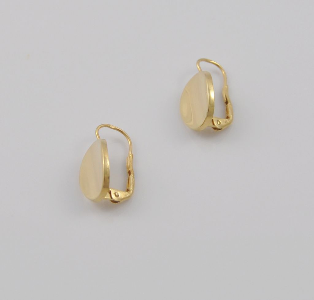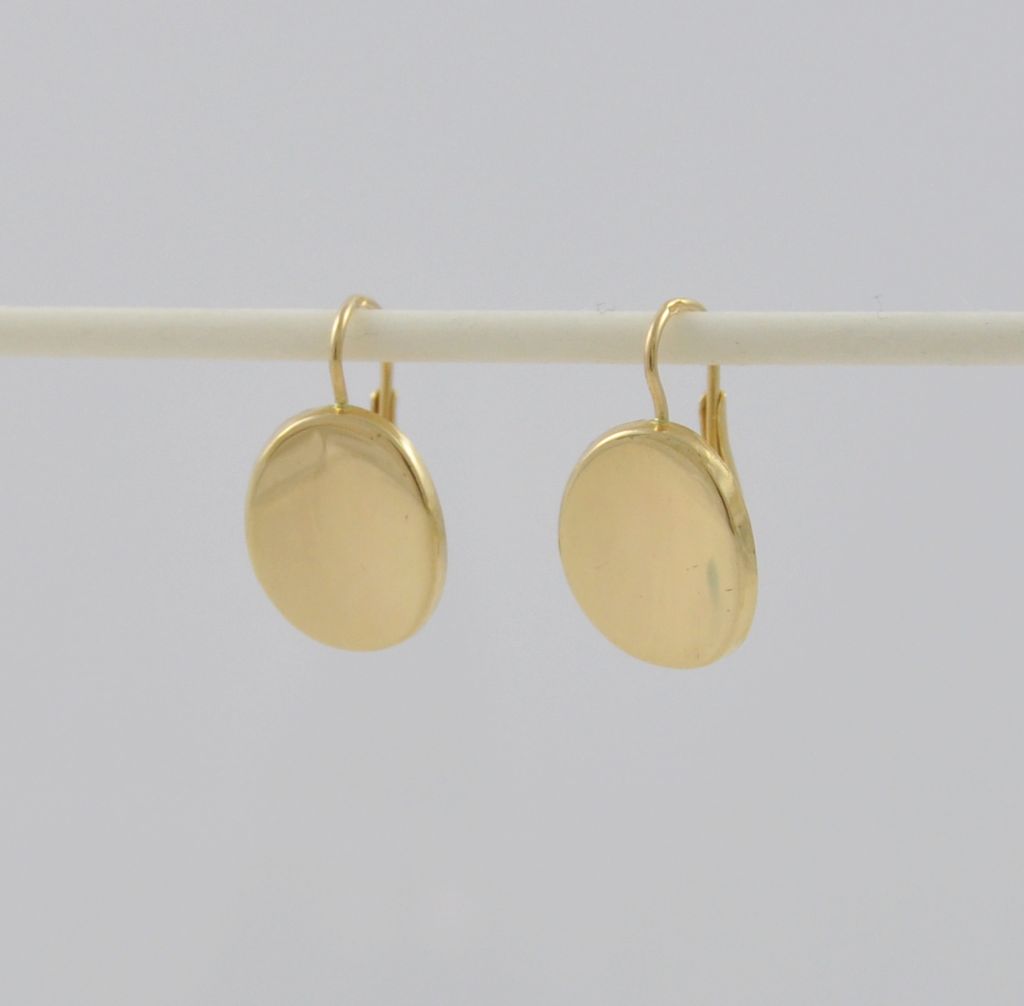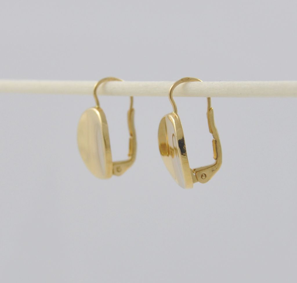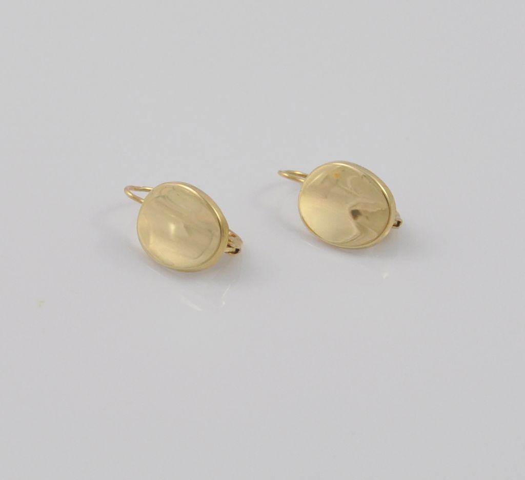 Złote kolczyki wykonane z wysokiej jakości żółtego złota próby 585 (14 karat). Modowe polerowane kolczyki o wysokości 15 mm i szerokości 11 mm. Waga kolczyków wynosi 2,33 gr (+/- 0,10 gr).
