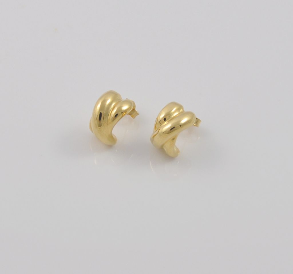 Złote kolczyki wykonane z wysokiej jakości żółtego złota próby 585 (14 karat). Modowe polerowane kolczyki o wysokości 12 mm i szerokości 7 mm. Waga kolczyków wynosi 2,23 gr (+/- 0,10 gr).